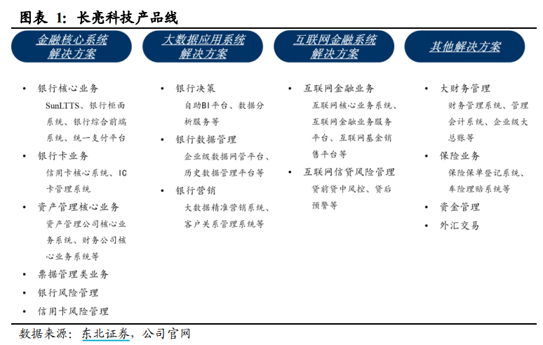 1、长亮科技是我国银行 IT 整体解决方案龙头。公司创立至今聚焦银行核心系 统,通过自主创新和外延并购不断拓展外围系统产品线。2013 年引 入原 FIS 大中华区总经理李劲松后,2015 年推出 JAVA 版新一代核心 系统并成功打造多个标杆项目。2020 年公司推出国内首个“微服务+ 分布式”的新一代核心系统版本,再次取得先发优势。