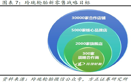 根据玲珑轮胎公开增发回复,2020年是公司新零售元年,玲珑轮胎提出了“新零售元年”战略,与腾讯云、华制智能联合开发智慧营销平台,打造线上线下相结合的公司新零售,力争2020年—2022年在全国打造300家战略合作经销商、1000家前置仓、2000家旗舰店、5000家核心品牌店、30000家紧密合作店。自2020年3月份实行新零售以来,国内零售市场同比增速超过50%。