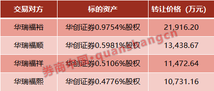 例如,华创阳安收购华瑞福裕所持股权需支付2.19亿元对价,其中华创证券副总经理华中炜持股10.47%,董事长陶永泽持股8.93%、高管彭波持股7.61%,如不考虑股权代持等情况,则交易完成后可获资金1666万元至2293万元不等。