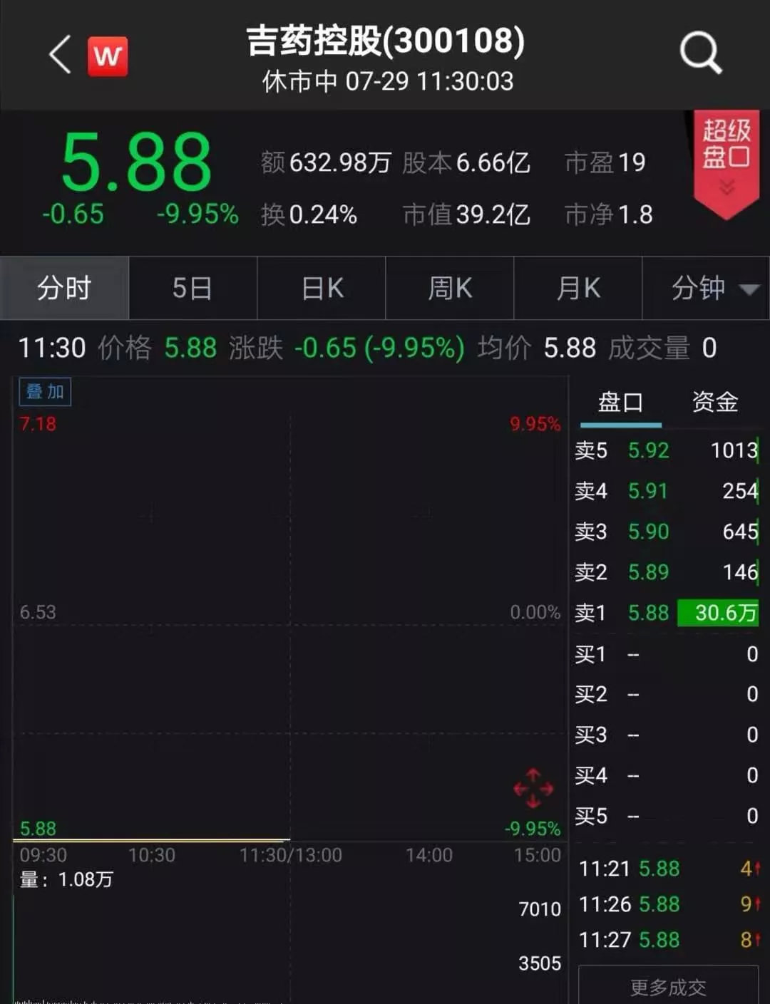 这一解释显然不能服众。7月29日开盘后,投资者们选择“用脚投票”——超过30万手的卖单将吉药控股牢牢封死在跌停板。