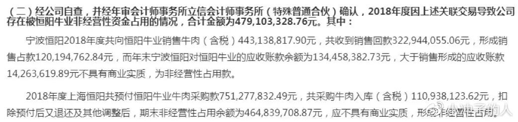 今年4月,因存在被第一大股东的关联企业恒阳牛业占用资金的情形,公司股票被实施其他风险警示。此后,公司2018年年报被出具无法表示意见的审计报告,深交所对公司股票交易实行“退市风险警示”。