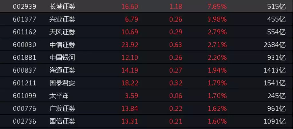 值得注意的是,当日,除了中信建投之外,二级市场的券商板块在经历前日大跌后出现全面拉升。早盘开盘不久,长城证券冲击涨停,兴业证券、天风证券等多只个股涨幅超过4%以上。截至当日收盘,长城证券涨幅7.65%,兴业证券涨幅3.98%。