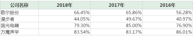 然而,与同行业公司相比,万魔声学的客户集中度偏高。歌尔股份近三年客户集中度在56%-66%之间;漫步者为41%-50%;国光电器为77%-85%。