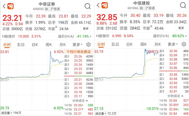 但市场显然给出了正向反馈,至今日收盘,中信建投证券A股涨幅8.88%,港股涨幅8.7%;中信证券A股涨幅4.22%,港股涨幅2.75%。最新数据显示,中信证券和中信建投市值接近5000亿。