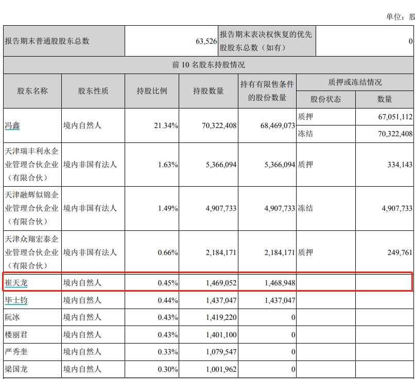 查询暴风集团2019年三季报发现,截至2019年三季度末,崔天龙持有1469052股暴风集团股票,持股比例为0.45%,为暴风集团第五大股东。