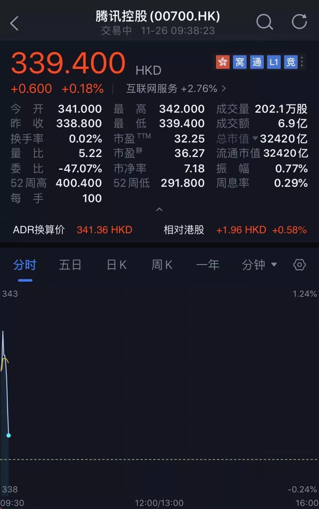 阿里巴巴11月26日早9时正式登陆港交所主板,竞价买卖盘时段大涨6%。截至基金君发稿,阿里巴巴目前的涨幅已经超7%,总市值已超4万亿港元,超越此前港股市值之王腾讯控股,目前腾讯控股市值约为3.27万亿港元。