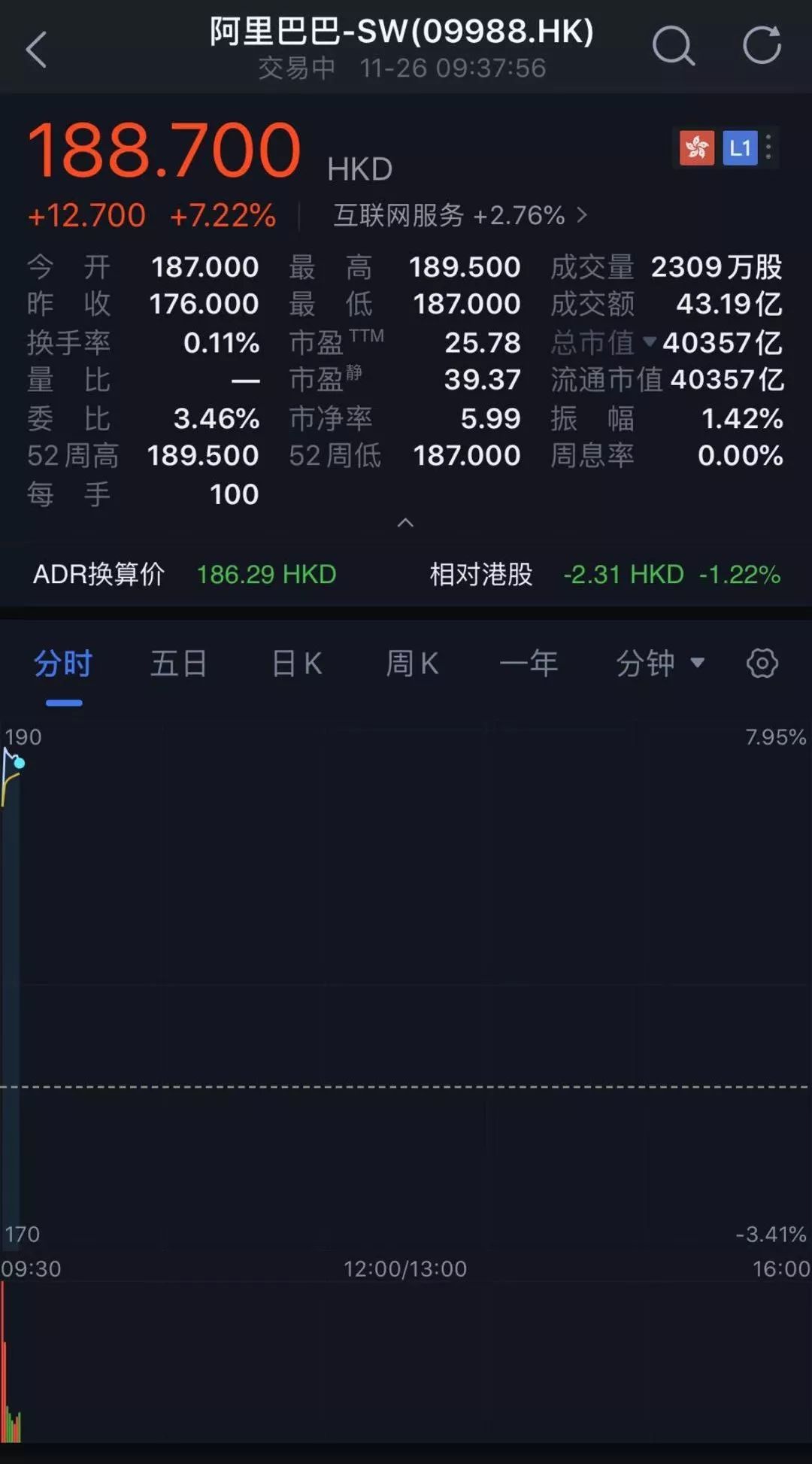 截止基金君发稿,目前阿里巴巴港股涨幅超7%,总市值超4万亿,一回来就立马成为港股之王!