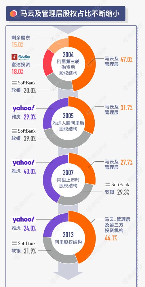 马云及管理层股权不断稀释,这也是国际资本不断涌入的结果。
