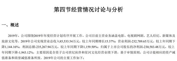 其中世纪伙伴的减值原因是2019年广电总局对“翻拍剧”、“宫斗剧”的严格限制,导致公司经营困难,计提商誉减值8.24亿。