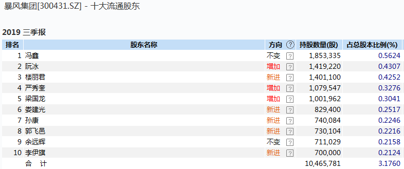 从暴风集团2019年三季报的前十大流通股东排名来看,除了身陷囹圄的公司实际控制人冯鑫之外,其余股东均是自然人。上一次公司前十大流通股东中出现机构的身影还是在2017年年报中,包括一家投资公司和两家基金,之后机构均快速逃离避险。