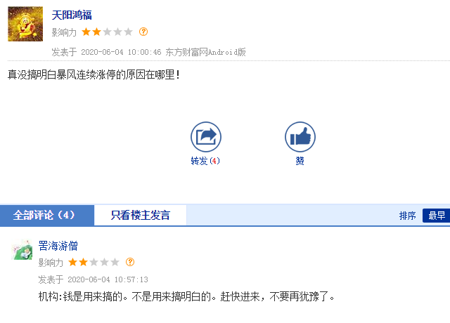 对于暴风集团近期的强势,懵圈的吃瓜群众还不少,在股吧上,不少网友发出了“灵魂拷问”: