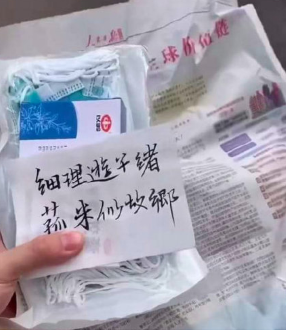 这两天,不少留学生也在社交媒体上晒出了自己收到的“健康包”物品。据悉,意大利米兰的留学生已经领取了第一批物资,这个用人民日报包裹的“健康包”里有20个医用外科口罩,一盒连花清瘟胶囊,还有一句手写诗“细理游子绪,菰米似故乡”。