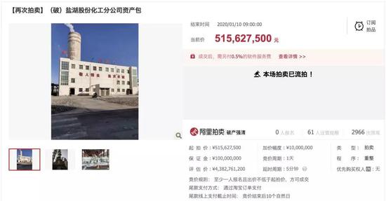 多次拍卖流产后,最新青海汇信将以30亿元获取上述资产。2019年12月底,*ST盐湖曾发布《资产处置进展》公告称,若没有其他主体愿意以超过30亿元拍下上述资产包,青海汇信愿意以30亿元获取拍卖资产。