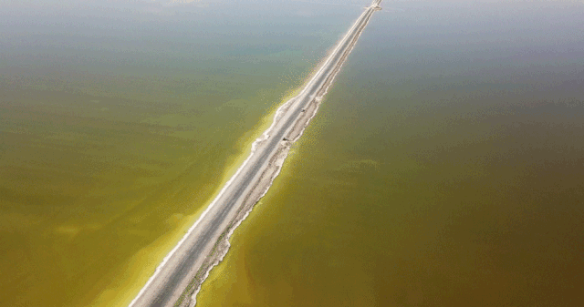 航拍察尔汗盐湖万丈盐桥(图片来源:摄图网)