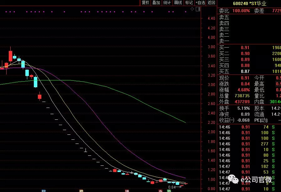 *ST华业股价也曾在2015年6月份牛市顶峰之时达到24.48元的高位,公司市值一度超过300亿。不过,业务转型也埋下隐患,2015年*ST华业不断“加杠杆”受让恒韵医药应收账款,规模逾百亿元。然而,到2018年9月底“爆雷”, 百亿债权惊现“萝卜章”。至此,*ST华业危机全面升级,此后不断曝出债务违约、实控人暂无法回国、控股股东质押股遭强平、董事涉嫌诈骗被刑拘。