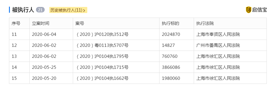 6月以来,上海拉夏贝尔服饰股份有限公司共13次被列为被执行人,累计执行标的超4千万元,达42,050,996元。其中,10次被上海市徐汇区人民法院列为被执行人。