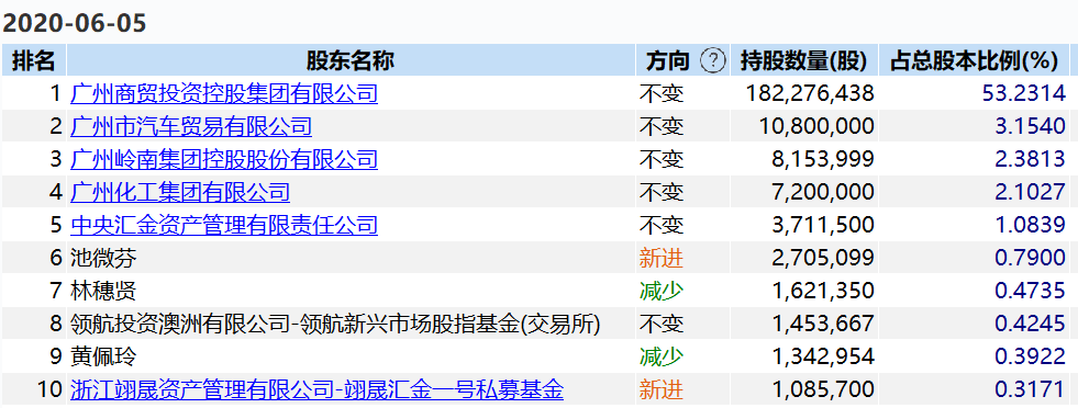 如余洪涛,至一季度末,他还是广百股份最大的自然人股东,持股比例1.44%,然而至6月5日,前十大股东榜中已找不到他的身影。