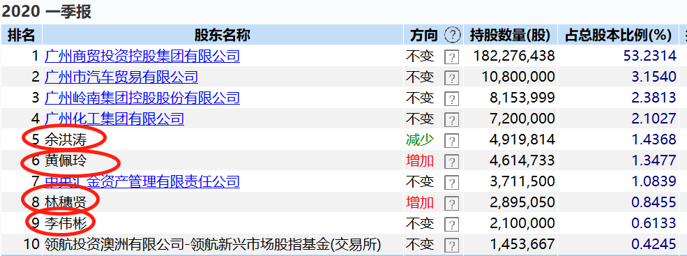 还有林穗贤和李伟彬 ,至一季度末,他们的持股比例分别为0.85%和0.61%,到此次停牌前,李伟彬已经退出了前十大股东榜,林穗贤的持股比例下降至0.47%。