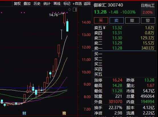 遭问询的网红股御家汇今日跌停