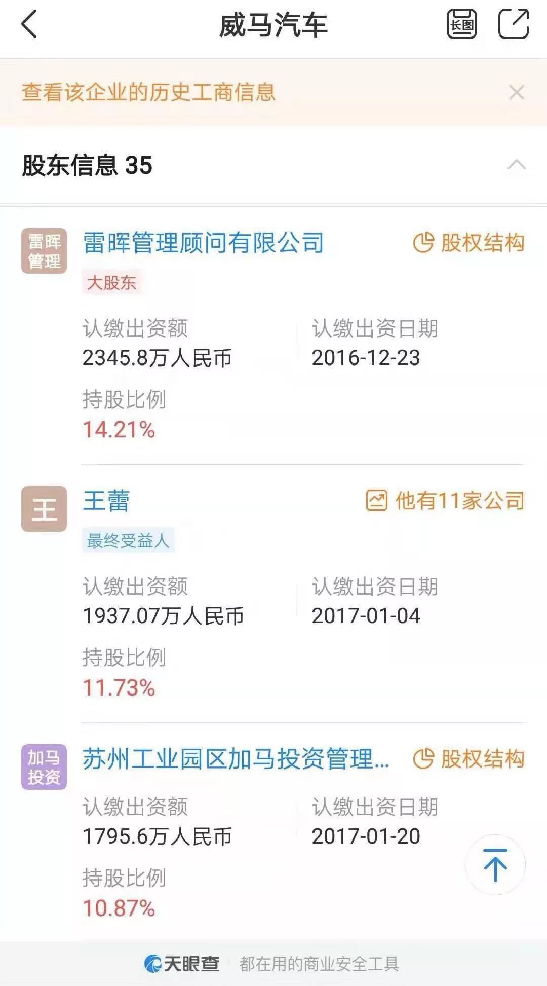 而王蕾则是威马汽车的核心人物之一,持有威马汽车母公司威马智慧出行科技(上海)有限公司11.73%股权,并担任监事。此外,王蕾还是威马汽车科技集团有限公司的监事。