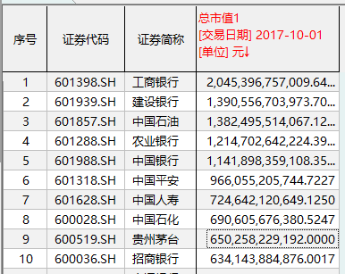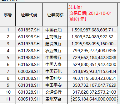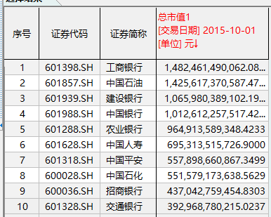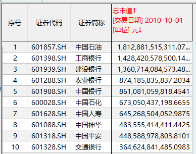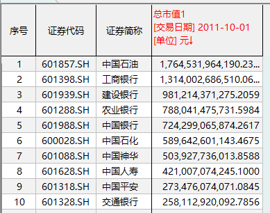 截至2009年10月1日,从排名前五的A股市值巨无霸来看,全部被石油石化和银行企业所占据。其中,只有1家公司超过2万亿元市值,那就是2007年登陆A股的中国石油。