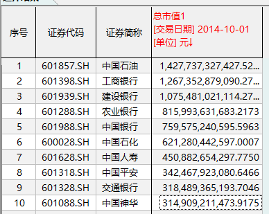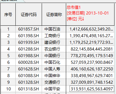 截至2013年、2014年的10月初,A股市值前十强排名整体平稳,中国石油、工商银行、建设银行依然位列前三甲。但其他部分公司的排名正在暗中涤荡。