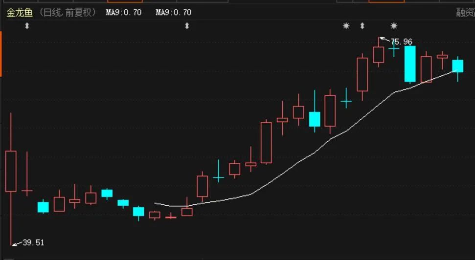 不过到了10月30日后,金龙鱼似乎看准了方向,开始了一波迅猛上涨,股价一度接近76元。