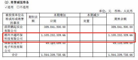 不过度过业绩对赌期后,这家“利润生产机”的子公司开始成为*ST鹏起的拖累。2017年它仅实现净利润1.096亿元,还不到2016年的一半。2018年公司高达15.44亿元的商誉减值中,子公司郴州丰越环保单家就计提了11.05亿商誉值。