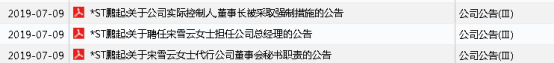 同一时间,董事长与财务总监双双缺位,*ST鹏起不得不紧急找来实控人的妻子宋雪云担任总经理、董事会秘书等诸多公司要职。