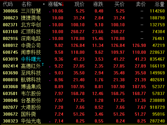 芯片概念股13日盘中大幅拉升,截至发稿,三川智慧、捷捷微电、北方华创、汇顶科技、深南电路等涨停,闻泰科技、中科曙光、高德红外、至纯科技等涨幅超9%。