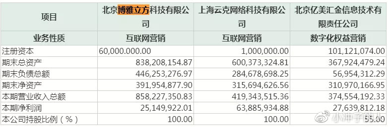 据记者调查,中昌数据在4年前启动转型后,连续收购了三个核心资产——博雅立方(全资子公司)、云克网络(全资子公司)、亿美汇金(持股比例为55%),均为数字营销行业。