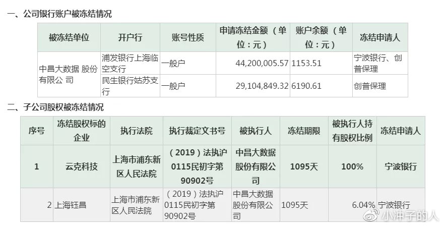 就在两个月前,中昌数据的控股股东三盛宏业所持公司部分股份被司法冻结。