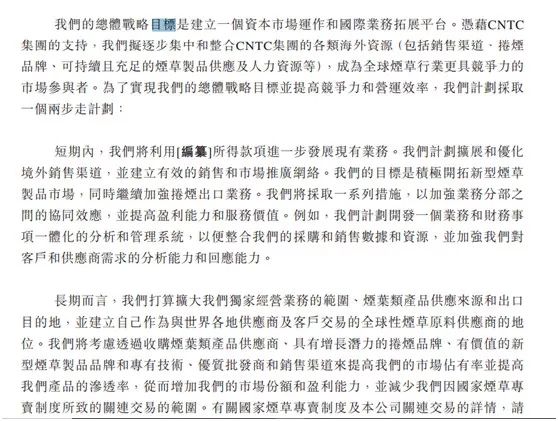 那么中烟香港上市的诉求是什么呢?招股书明确提到,此次中烟国际(香港)上市的终极目的是建立资本运作及国际业务拓展平台。公司凭借中烟集团的支持,希望逐步集中和整合中烟集团的各类海外资源(销售渠道、卷烟品牌、可持续且充足的烟草制品供应及人力资源等),进而成为具有全球竞争力的烟草公司。