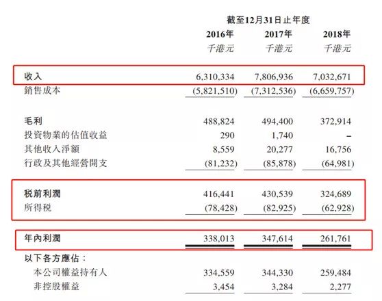 作为中国烟草总公司的嫡系,中烟香港当然并不差钱。根据招股书显示,2016年至2018年,公司实现营业收入分别为63.1亿港元、78.06亿港元、70.32亿港元,所得税支出分别为6842.8万港元、8292.5万港元、6292.8万港元,税后年利润分别为3.38亿港元,3.47亿港元、2.61亿港元。