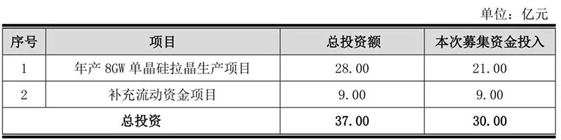 7月14日,公司发布定增扩产预案,公司拟定增募资30亿元,其中“年产8GW单晶硅拉晶生产项目”拟投入21亿元。