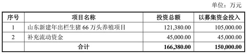 具体来说,66万头由莱阳龙大新建年出栏33万头商品猪项目、莱州龙大新建年出栏33万头商品猪项目两个子项目构成。其中,莱州龙大新建年出栏33万头商品猪项目达成年可实现营业收入为6.18亿元,年净利润为1.32亿元;莱阳龙大新建年出栏33万头商品猪项目达成年可实现营业收入为6.18亿元,年净利润为1.36亿元。