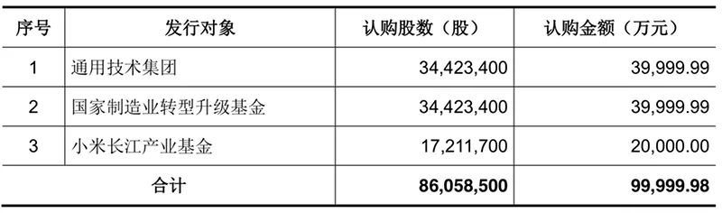 更重要的是,本次定增将由“国家队”认购,定增将引入通用技术集团、国家制造业转型升级基金和小米长江产业基金等三大战略股东。