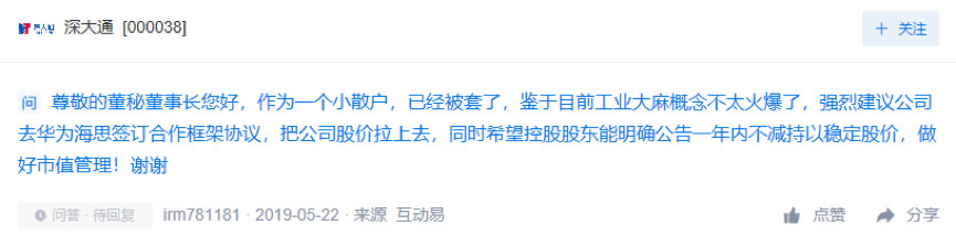 此外,中证君注意到,此前深大通多次发布关于进军工业大麻领域的消息,但股价走势一直萎靡不振。对此,有投资者在互动易平台上为公司“支招”称,现在工业大麻概念已经不够火爆,建议公司进军芯片产业。