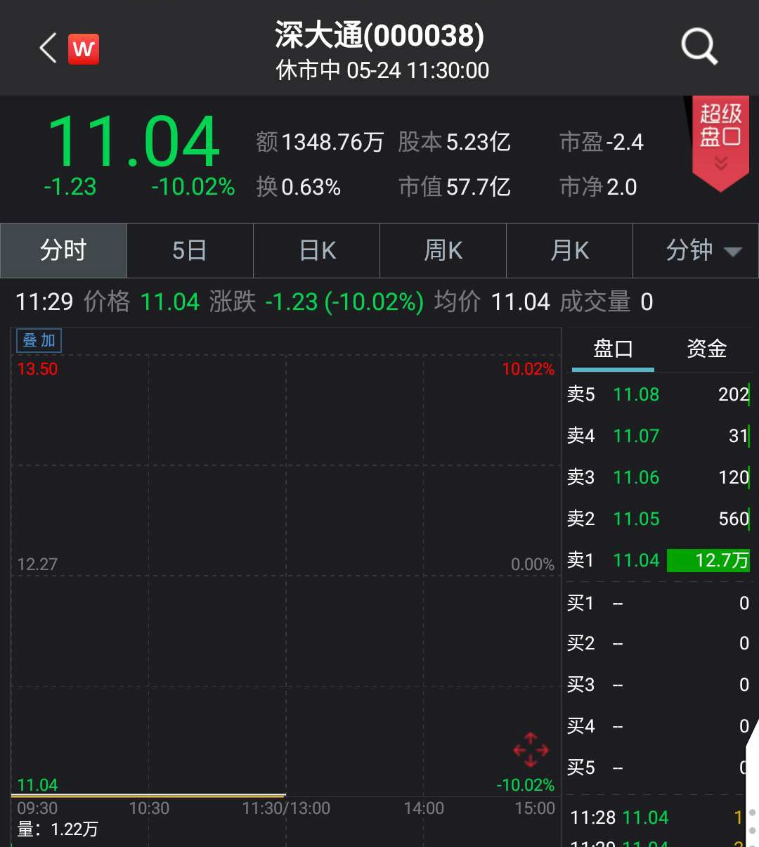 投资者“投票”深大通12万手封跌停