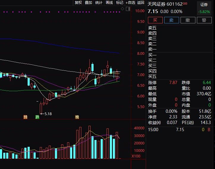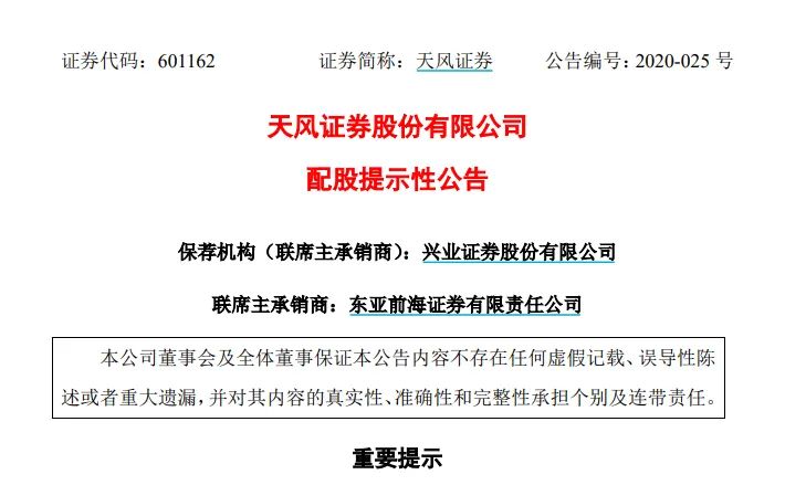 根据配股公告,天风证券为每10股配3股,本次配股简称:天风配股;代码:760162;配股价格:3.60 元/股,预计募资55.94亿元;停牌前天风证券的最新收盘价为7.15元。