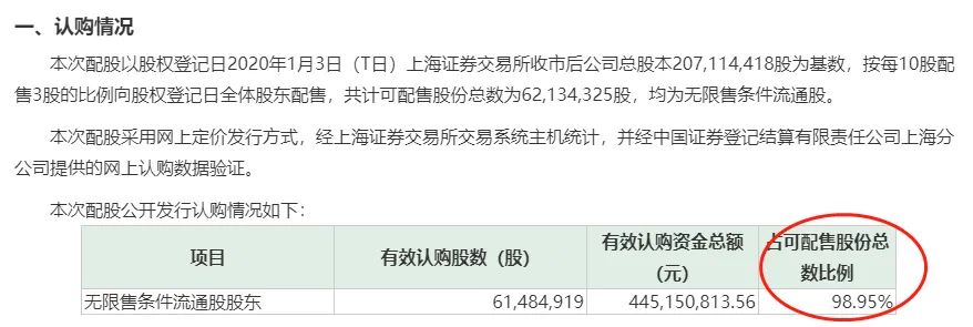 不参与配股,直接亏11.99%。然而,配股结果出来后,仍有超过1%的投资者没有参与配股,白白亏钱。