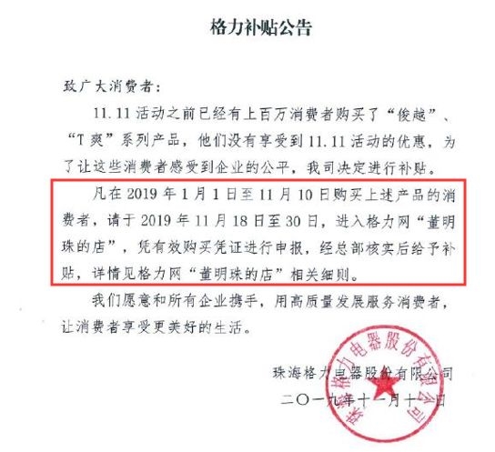 目前还没有官宣格力电器全天的销售额,但是11日晚8点,格力电器又豪气地宣布,今年以来买的格力“俊越”“T爽”系列产品,都将可以凭有效购买凭证申请补贴。