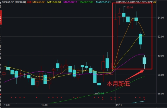 11月12日,格力电器早盘盘中一度跌4.2%,股价跌至本月以来最低。