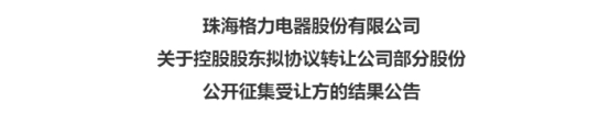值得注意的是,公告中特意表示,意向受让方应自被确定为最终受让方之日(即本公告发布之日)起10 个工作日内与格力集团签订《股份转让协议》。