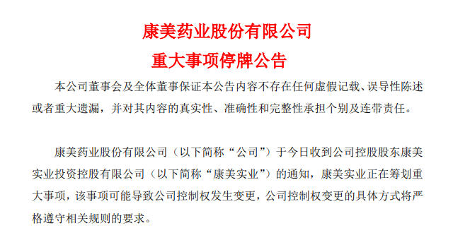 ST康美7月23日早间公告,今日收到公司控股股东康美实业的通知,康美实业正在筹划重大事项,该事项可能导致公司控制权发生变更,公司控制权变更的具体方式将严格遵守相关规则的要求。ST康美表示,鉴于该事项存在不确定性,经申请,公司股票自7月23日上午开市起连续停牌两个交易日。