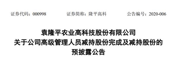 1月3日晚,隆平高科发布公告,公司董事、决策委员会委员、总裁、执行委员会主任廖翠猛在刚完成400万股的减持后,拟自公告披露之日起15个交易日后的六个月时间内通过证券交易所集中竞价交易、大宗交易方式减持公司股份合计不超过69万股,占公司总股本0.05%。