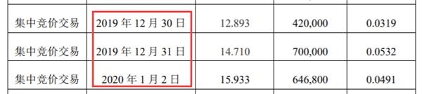 值得注意的是,廖翠猛的上述400万股减持时间集中于2019年12月下旬,其在近日股价大涨中也有减持。2019年12月30日减持42万股,2019年12月31日减持70万股,2020年1月2日减持64.68万股,合计变现2602万元,占总变现金额的47.96%。