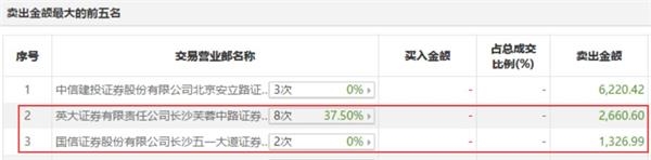 值得注意的是,在2019年12月31日的龙虎榜中,出现了两个长沙当地的营业部席位,即英大证券长沙芙蓉中路证券营业部和国信证券长沙五一大道证券营业部,合计卖出金额达3987万元,买入金额为0元。
