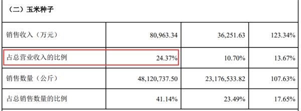 隆平高科此前发布的《2018-2019业务年度经营情况报告》显示,公司收入主要来自水稻种子,其次是玉米种子。2018年10月1日-2019年9月30日,水稻种子、玉米种子分别贡献收入15.58亿元、8.09亿元,占总营收的比例为46.91%、24.37%。