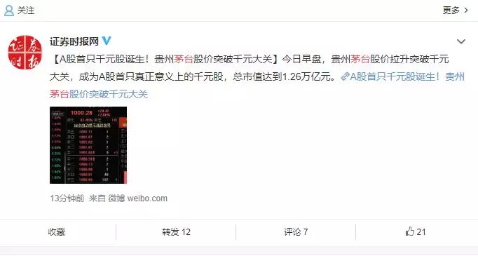 千元茅台也在微博和微信朋友圈引发刷屏。